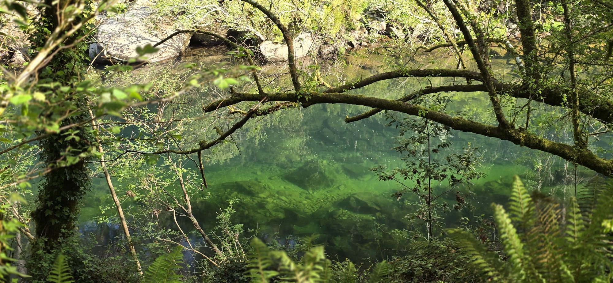 As bicicletas avanzaban esta mañá coa liberdade da adolescencia movíanse case sen esforzo á beira do río que mostraba as intimidades do seu leito a través dun fermoso cristal verde